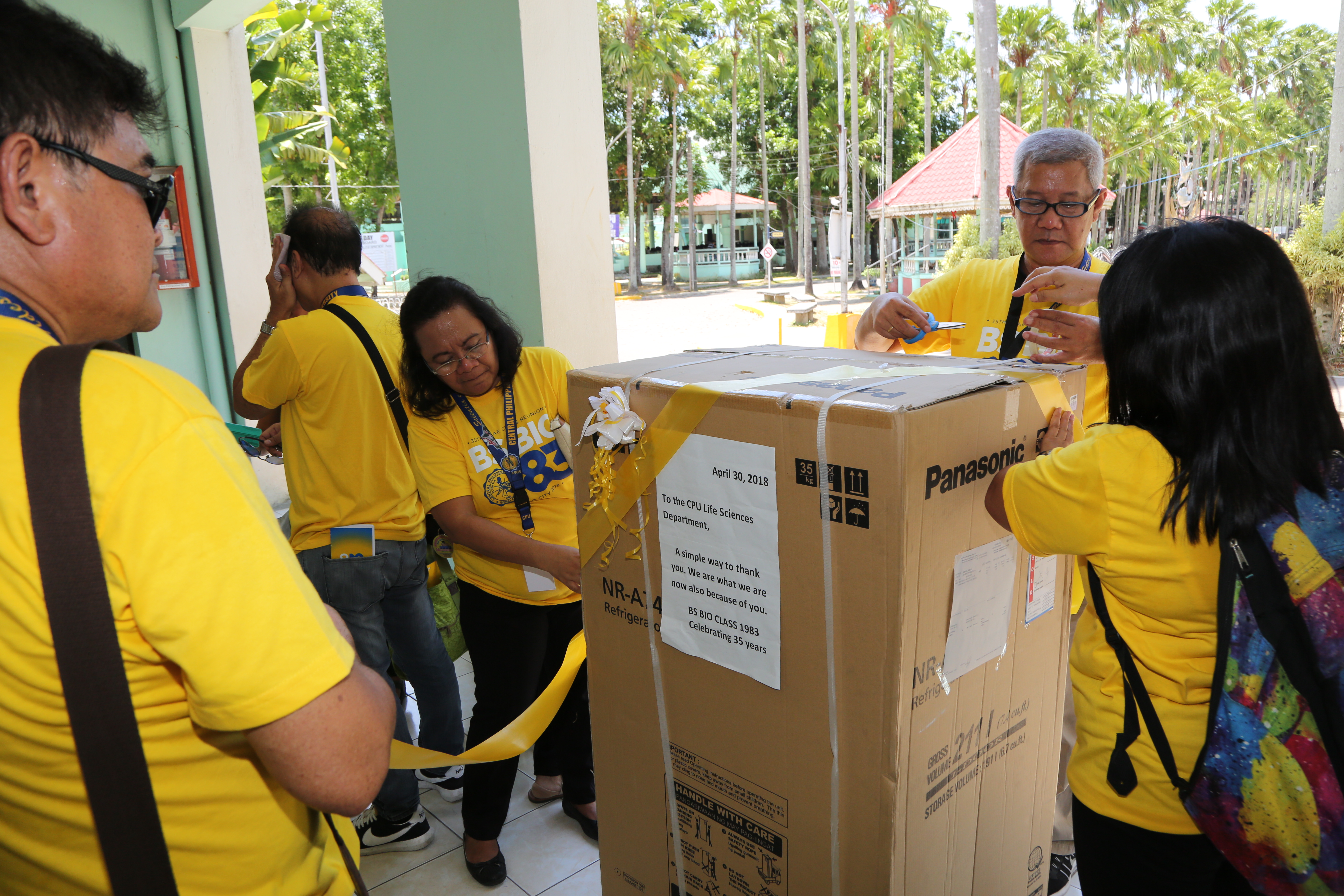 Paying it forward – CPU BS Bio Batch 1983 donates a Panasonic refrigerator to the CPU Life Sciences Department.